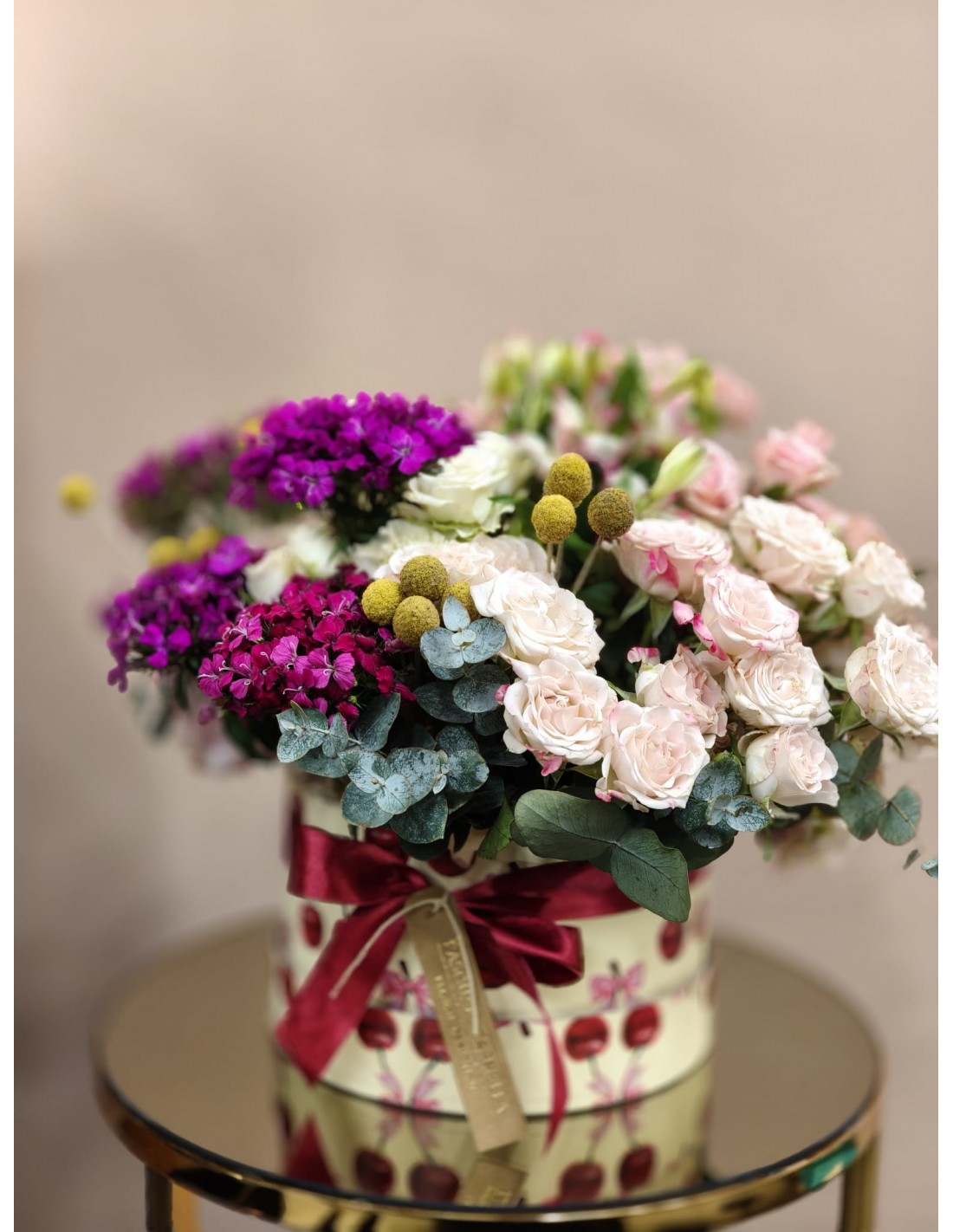Box floreale con box con decorazione ciliegie rosse h30cm