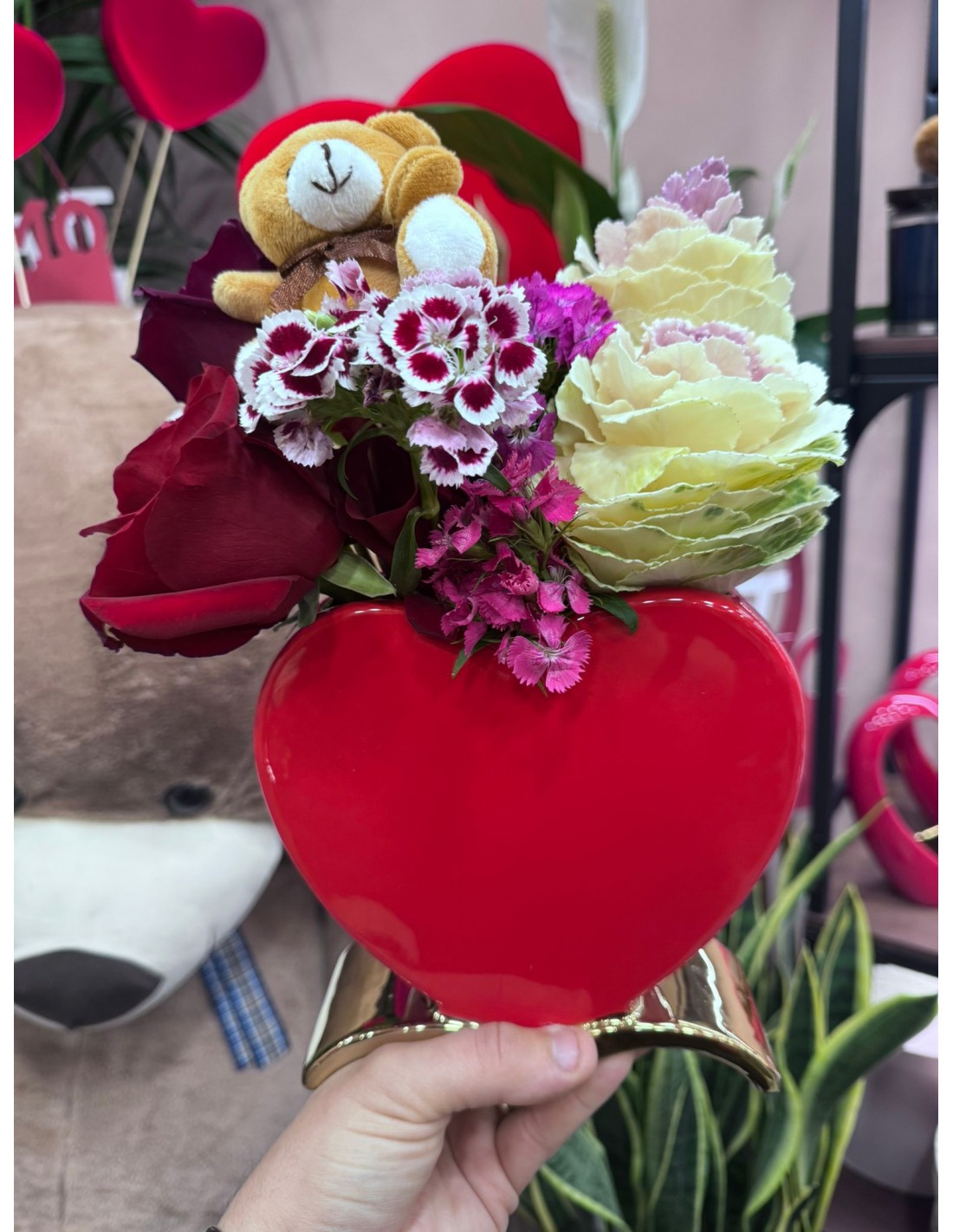 vaso a forma di cuore di Ceramica rossa con base in ceramica colore oro h 30 cm x 20 cm