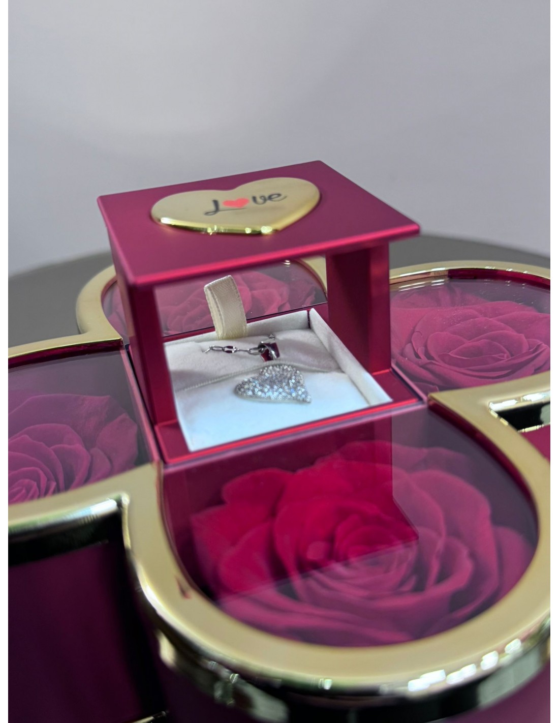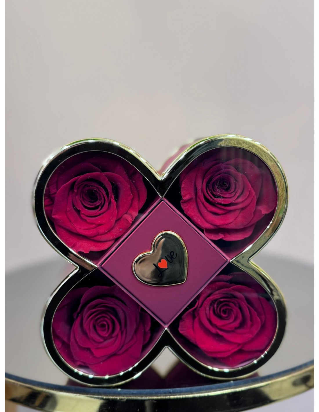 Quattro rose stabilizzate con regalo in favolosa ed elegante scatola regalo